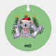 Dieses Joy Koloa Bären Weihnachtsmetall-Ornament wird Stolz auf Ihren Weihnachtsbaum in diesem Jahr. Mit einem luxuriösen, weißen Band zum Aufhängen und der Möglichkeit eines niedlichen Geschenktüchens, um es zu halten, personalisieren Sie mit einem Namen, Jahr und Hintergrundfarbe.