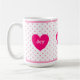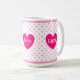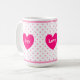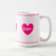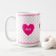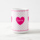 Schöne Tasse mit Herz, rosa Polka Punkte und personalisierte Freude, Liebe, leichter Text.
