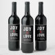 Schwarz und Weiß Moderne Freude & Liebe Skript Weihnachtsweine Label. Klicken Sie auf die Schaltfläche "Anpassen", um Schriftart, Größen und Farben für ein einzigartiges Ein-Kind-Produkt zu ändern.