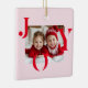 Feiern Sie mit diesem "JOY"-personalisierten Foto-Ornament den Zauber der Ferien - ein wunderschöner Sake für Ihren Weihnachtsbaum oder ein nachdenkliches Geschenk für die Lieben. Mit fett roter Typografie auf einem weichen pastellfarbenen Hintergrund und Platz für Ihr Lieblings-Foto oder Ihre Lieblingsfamilie, fängt es die Wärme und das Glück der Saison ein. Passen Sie es einfach mit Ihrem eigenen Foto und optionalem Backtext an - der perfekte Sake für Eltern, Großeltern oder Freunde! Perfekt für: Familiengeschmückte Weihnachtsgeschenke für Großeltern Kinderferien-Keepsakes Personalisierte Weihnachtsdekoration