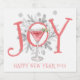 Whimsical einzigartige illustrierte JOY Typografie Silvester Party Flaschen Etiketten mit Urlaub Cocktail und Kieferngebäck. Freuen Sie sich auf eine fröhliche Urlaubsparty im Serviettenstil. Toast zu einem glücklichen 2023.
