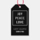 Fügen Sie Ihren Urlaubsgeschenke dieses Jahr eine elegante, moderne Touch mit diesen schicken Schwarz-Weiß-Tags hinzu! Design zeigt "Joy, Peace, Liebe" in weißer Blocktypografie in einer weißen quadratischen Kontur, vor einem knusprigen schwarzen Hintergrund. Es werden zwei Zeilen benutzerdefinierter Text gelassen, in denen Sie eine Nachricht und einen Namen oder eine von Ihnen gewählte Anpassung hinzufügen. Würde besonders phantastisch aussehen auf Geschenke, die in Kraftpapier oder mattes weißes Papier verpackt sind!