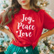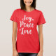 Joy Peace Liebe Red Brushed Script Womens Holiday T-Shirt