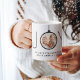 Celebrate the simple joys of the season with an elegant custom photo holiday mug. The template is set up as a "we love you grandma" gift, but is easy to personalize for anyone. Change wording to a favorite quote or add details of a special life moment. The colors and font styles can be customized with the Zazzle Design Editor tool. Create your own unique keepsake gift for any family member or friend, such as mommy, daddy, grandpa, sisters, besties, etc. The modern minimalist black and white design features a JOY Christmas ornament, stylish classic typography and one round photo of your choice. There's no better gift than the simple joys of cherished memories.