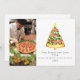 Illustration von Pizzaschnitt in Form eines Weihnachtsbaumes mit Sternen. Personalisieren Sie den Namen, das Jahr und das Foto.