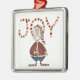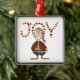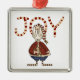 Der Weihnachtsmann bewahrt den Urlaubssornament mit einem kantigen Stangen-Text, der "JOY" heißt.