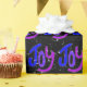 Lila, rosa und blauer Freudentext auf Schwarz mit Schneeflocken. Die Hintergrundfarbe kann geändert werden.