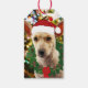 Digitales Kunstgemälde eines jungen Weihnachtsjunges mit Kranz, Weihnachtsmannmütze und dekoriertem Baum.