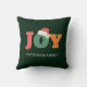 Kundenspezifische, farbenfrohe, festliche, typografische "JOY" Weihnachtsmannmütze, grün, Urlaubskissen. Passen Sie Ihren Namen / Text oder die Unterschrift Ihrer Familie an.
