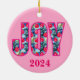 JOY Word Art in Fuchsia Pink und Aquamarin Keramik Ornament