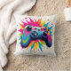 Das Bild zeigt eine farbenfrohe und dynamische Darstellung eines Gaming-Controllers. Der Regler wird in kräftigen Regenbogenfarben gerendert, mit einem glänzenden Finish, das seine Tasten, Daumenstäbe und das Richtpad hervorhebt. Um den Controller herum ist ein explosiver Berst von bunten Streifen und Spritzen, ähnlich einem Feuerwerk Effekt. Der Hintergrund besteht aus verstreuten Sternformen in passenden hellen Farben, die die energetische und spielerische Ästhetik ergänzen. Das Design ist fett, auffallend und zentriert auf den Controller.