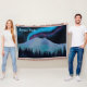 An einer kalten Nacht in Alaska leuchten lila und blaue Nordlichter über schneebedeckte Berge. "Joyeux Noё l" erscheint in blau und weiß.
