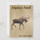 Ein digitales "Vintages" Bild eines BullenElchs (Alces alces), das auf einem alten Papier- oder Pergamenthintergrundbild abgebildet ist. Es erscheint auch der französische Text "Joyeux Noё l". Fügen Sie Ihren eigenen zusätzlichen Text hinzu.
