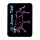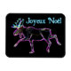 Eine helle, neonähnliche Darstellung eines Bullenmoose auf schwarzem Hintergrund. Französischer Text, "Joyeux Noё l" erscheint in leuchtend blau und weiß.