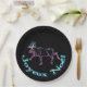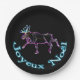 Eine helle, neonähnliche Darstellung eines Bullenmoose auf schwarzem Hintergrund. Französischer Text, "Joyeux Noё l" erscheint in leuchtend blau und weiß.