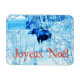 Ein blaues und weißes Bild einer Kuh Elche in urbaner Umgebung im Winter. Französischer Text, "Joyeux Noё l" erscheint in rot. Elche sind das ganze Jahr über Einwohner in vielen Alaskan Gemeinden. Hier in Anchorage gibt es ca. 1500 Tiere, zusammen mit Wölfen, Braunbären und anderen Wildtieren. Sie sind meist gut benommen. Sie überqueren oft die Straßen an der Kreuzung, nachdem sie für ein Spaziersignal gewartet haben.