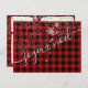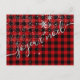 Postale postale que dire joyeux Weihnachten de scripte de neige sur un kariert de buffle rouge.