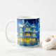 Joyeux Noël Hübsch Blue Christmas House Kaffee Tasse.