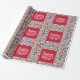 Ein eleganter und extravaganter kalligrafischer Schriftart in Beige auf Rot liest "Joyeux Weihnachten", französisch für frohe Weihnachten. Die Schrift ist von einer quadratischen roten Form umgeben, um die Figuren von Weihnachten des Vaters; ein Pirat Lebkuchen; ein Nussknacker; verpackte Geschenke; Baubels; Sterne; Taschenuhren und Schneeflocken erscheinen in gedämpftem Rot; Senf und Blau in blass. Diese sind ideal, um den Geist der Weihnachten zu Ihren Geschenken in dieser festlichen Jahreszeit.