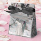 Eine Vintage französische Weihnachtspostkarte aus dem öffentlichen Bereich. Es zeigt ein Mädchen, das als Weihnachtsengel gekleidet ist und Geschenke trägt.