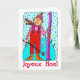 Joyeux Weihnachten Karten. Bild eines Skifahrers mit Skiern, die jedem ein frohes Weihnachtsfest und Joyeux Weihnachten wünschen.