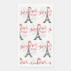 Joyeux Weihnachten Gasttücher mit dem Eiffelturm mit einer Weihnachtsmannmütze und Schneeflocken.