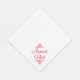 Joyeux Weihnachten Papierservietten . Es zeigt ein extravagantes Typografie-Design von Alma Wad . Französische Weihnachtswünsche in eleganten Schriftart in Weiß gegen Rot. Sie können sie jetzt mit einem Monogramm /name /logo usw. personalisieren.