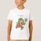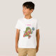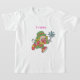 Joyful Clown with a Pinwheel” T-Shirt. A cheerful cartoon clown in a vibrant red, green, and yellow outfit runs playfully while holding a light blue pinwheel, radiating fun and whimsy.