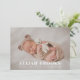 Einfache Geburtsankündigungskarte mit dem Foto Ihres Neugeborenen, auf dem der Name in fett gedrucktem Schriftart steht. Hinzu kommt ein Script-Schriftart, der "wir stellen uns glücklich vor". Sie können ein anderes Foto und eine Nachricht auf der Rückseite hinzufügen.