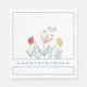 Ein lustiges, blumengeschmücktes, warmes Wetter-Design mit einem whimsical Garten. Im Garten befindet sich ein blauer, blauer Vogel mit einer Auswahl an Blume in Rot, Rosa und Gelb. Der Textbereich, GLÜCKLICHER GEBURTSTAG, kann angepasst werden.