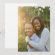 This wedding invitation features a warm, inviting design with two individuals embracing in an outdoor setting surrounded by lush greenery and sunlight. The color palette includes soft blues and grays that harmonize beautifully with the natural backdrop, creating a serene and joyful atmosphere. Captured in a realistic style, this photograph conveys genuine affection and happiness, making it perfect for celebrating love and companionship on your special day.