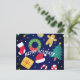 Get ready for a joyful holiday season with this super fun and festive postcard! Against a cool, deep navy blue background, we’ve gathered all the best parts of Christmas: a bright Christmas tree, a friendly gingerbread man, a tasty candy cane, and cute wreath and gift designs!