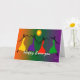 Freuen Sie sich auf eine fröhliche Grußkarte mit bunten tanzenden Silhouetten. Dieses Design spiegelt die Feier von Gemeinschaft, Kreativität und Wohlstand während der Ferienzeit wider.