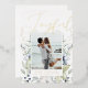 Verbringen Sie einen Feiertagsjubiläum mit dieser modernen und eleganten Weihnachtskarte mit einem Blumenrahmen aus weichem pastellfarbenem Foto und blauen Weihnachtsbeeren. Mit Ihrer Wahl von Rose Gold, Gold oder Silber reale Folie.