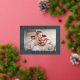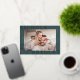 Teilen Sie die Neuigkeiten Ihrer Verlobung mit diesen eleganten bewahren Sie die Dattelkarten mit einem horizontalen oder landschaftsorientierten Foto, in dem Ihre Namen in klassischer Schrift an den Ecken ausgerichtet sind, das Foto leicht überlappen und sich über die Papierränder hinaus für ein modernes Aussehen erstrecken. Personalisieren Sie Ihre Hochzeitsdetails mit zwei Textzeilen an den Seiten, mit einem zusätzlichen Textfeld auf der Rückseite.