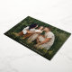 Mit diesem einfachen und eleganten Design erstellen Sie Ihre Urlaubsfotokarten schnell und einfach. Die Karte zeigt Ihr beliebtes horizontal oder landschaftsorientiertes Foto in voller Blende, mit "joy to the world" überlagert in Goldfolienskripten. Personalisieren Sie mit Ihren Namen und das Jahr am Ende. Karten kehren zu einem modernen geometrischen Baummuster in dunkelgrün und weiß um.