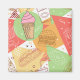 Adorable sweet pattern with abstract in the background. The artwork featuring illustrations of daily fast food like hamburger in multi-color like pink and green.
