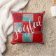 Joyful Script Rot und Blau Knittern Kariertes Muster Weihnachtsbaum Kissen