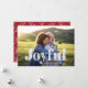 Trendy Joyful Red and White Wirbel Foto Weihnachtsgrüße Karte.