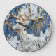 Der markante Rentier, mit goldenen Akzenten gestaltet, steht vor einem Hintergrund tiefblauer und schimmernder Weiß. Dieses festliche Kunstwerk vereint Eleganz und Natur in einem atemberaubenden visuellen Genuss.