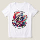 Ein reizender Waschbär mit einer Weihnachtsmannmütze hält einen Bonbonstock, umgeben von festlichem Heiligen. Das skurrile Design besticht durch eine spielerische Touch und einen besonderen Feiertagssjubiläum.