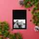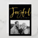 Moderne Urlaubskarte mit "Joyful" handgeschriebenem Goldfolienskript mit festlich schwarzem Hintergrund. Personalisieren Sie die Vorderseite der Karte, indem Sie Ihr bevorzugtes horizontales Foto und Ihren Namen hinzufügen. Die Rückseite der Karte weist ein modernes, schwarz-weißes Weihnachtsbaummuster auf.