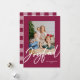Eine Urlaubsfotokarte mit dem Wort "fröhlich" in einem modernen Drehbuch, das Ihr Lieblings-Foto überschneidet.