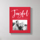 Zeigen Sie Ihr Lieblings-Foto mit unserem Joyful-Script-Leinwand-Druck. Der Leinwand-Druck enthält das Wort "Joyful" in einem weißen, handgeschriebenen Skript mit einem rot gerahmten Foto. Personalisieren Sie den Ausdruck, indem Sie Ihren Namen oder benutzerdefinierten Text hinzufügen.