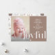 Die weiße Weihnachtskarte ist ein fröhlicher Typ auf einem beruhigenden, neutralen Hintergrund mit einer schlichten, weißen Typografie-Urlaubssendung und Foto auf der Vorderseite. Die Rückseite ist mit einem hübschen illustrierten Reh- und Kiefernkegelprint in sanften Tönen gestaltet.