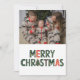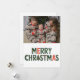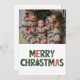 This customizable Christmas card captures the spirit of togetherness with space for your own family photo, surrounded by festive cheer and playful typography. The colorful “MERRY CHRISTMAS” design, featuring a tree-shaped flourish, sets a joyful tone. The reverse side carries a printed message: “From our family to yours, may this Christmas season wrap you in warmth, joy, and the comfort of togetherness…” Your name will be included, making this card a personal expression of love and holiday wishes.