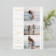 Ein elegantes und elegantes Design mit drei Fotos, die rechts in einer senkrechten Anordnung angeordnet sind. "Joyful" erscheint neben Ihrem Foto in modernen Goldfolien-Schriften. Personalisieren Sie mit Ihrem Familiennamen und dem individuellen Urlaubserlebnis auf der rechten Seite für die perfekte Touch zu diesen cool minimalistischen Weihnachtskarten 2022 mit Goldfolienakzenten.