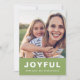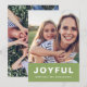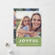 Dieser moderne, minimalistische 2-Foto-Weihnachtsgrün mit einem fröhlichen, weißen Schriftzeichen auf einem hellen und fröhlichen grünen Hintergrund. Auf der Rückseite dieser trendigen Urlaubskarte befindet sich ein komplettes Foto.