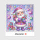 Feiern Sie den Zauber der Saison mit einem ansprechenden festlichen Aufkleber, der einen fröhlichen Weihnachtsmann präsentiert, der in einem lebendigen violetten Ambiente geschmückt ist.