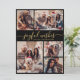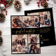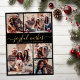 Modern Simple Elegant Calligraphy Black und Gold 5 Foto Collage Joyful wünscht Script Weihnachtskarte. Diese festliche, minimalistische, skurrile 5 (5) Foto-Urlaubskarte-Vorlage verfügt über eine hübsche Gitter-Foto-Collage und "Joyful Wishs" Grußtext ist in einem schönen handgeschriebenen Wirblen Swash-Schwanz-Schriftart-Skript in Gold auf schwarzem Hintergrund geschrieben. Auf der Rückseite mit Ihrer Grußbotschaft-Vorlage mit einem kleinen Herzdoodle auf weiß und einer horizontalen Bildvorlage. Hübsche Grußkarte für Ihre Familie und Freunde in der Weihnachtszeit.